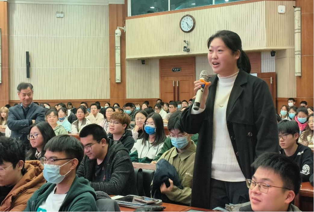 互动环节,马大为就学生提问与在场师生进行交流探讨,还为提问学生赠送了亲笔签名的《“未来”科学:未来科学大奖获奖者访谈实录:2016-2019》,对同学们的积极思考和钻研探索的精神给予支持和鼓励。
