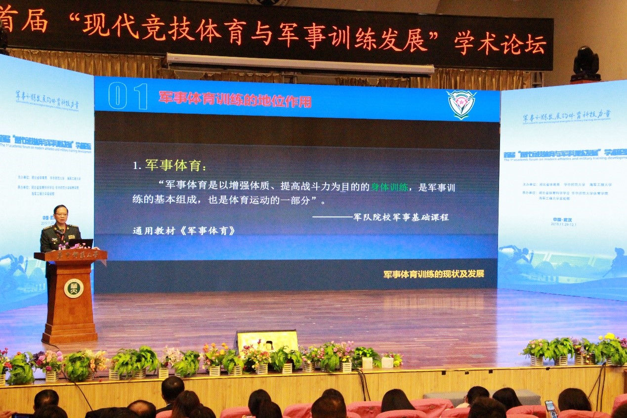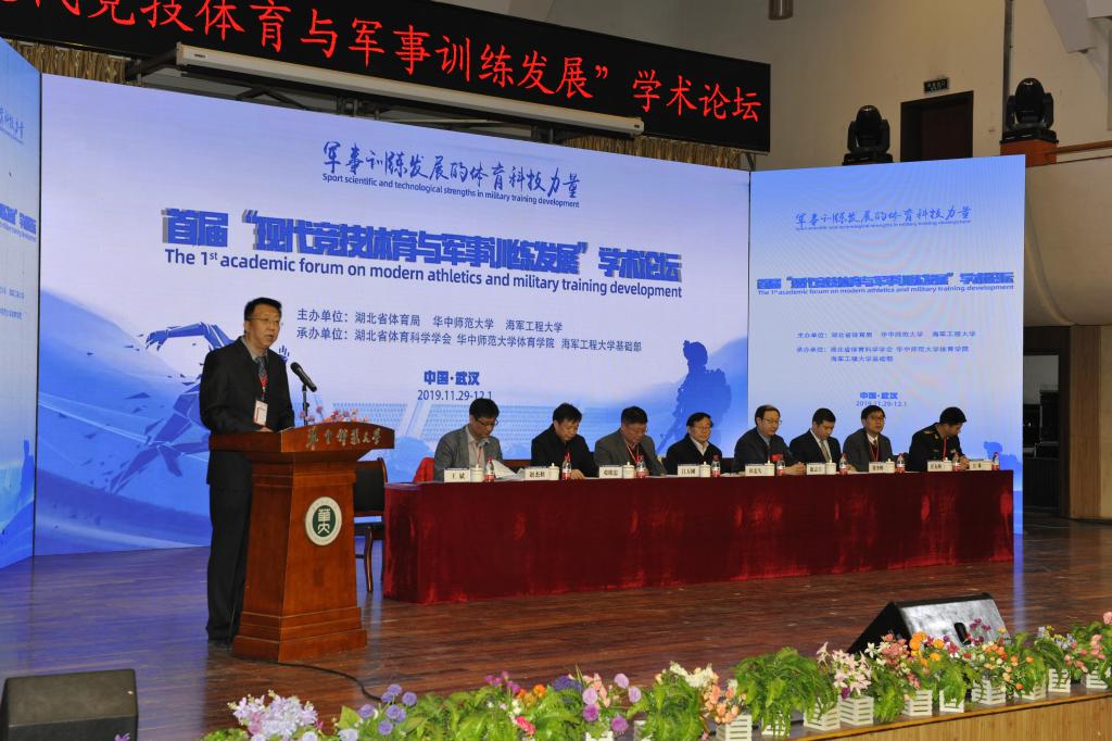 华大在线讯(通讯员 卢俊霖 鄢雨萌)11月30日至12月1日,由湖北省体育局、华中师范大学和海军工程大学联合主办的“现代竞技体育与军事训练发展”学术论坛在汉召开。中央军委训练管理部代表、省直机关和相关职能部门负责人、“特殊领域人才选拔与训练研究中心”学术委员会委员和中心成员、主题组专家和特邀代表、一线部队代表以及来自全国55家军地单位嘉宾共计260余人参会