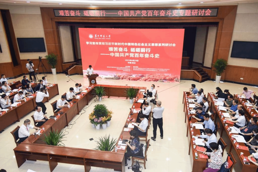 华大在线讯(通讯员 李肖麟 马珺)6月20日,由湖北省中国特色社会主义理论体系研究中心、湖北省社会科学界联合会和华中师范大学共同主办,湖北省中特中心华中师范大学分中心和教育部高校思想政治工作队伍培训研修中心(华中师范大学)共同承办的学习宣传贯彻习近平新时代中国特色社会主义思想系列研讨会在科学会堂一楼报告厅召开。来自中央党校、中国社科会科学院、武汉大学、华中科技大学等多所高校的专家学者围绕“艰苦奋斗 砥砺前行——中国共产党百年奋斗史”主题进行了深入阐释和研讨。