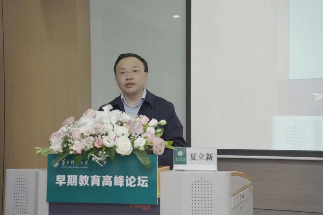 夏立新致欢迎辞,对与会领导、专家和来宾表示热烈欢迎,并介绍了我校早期教育学院成立的政策背景、建设情况及发展设想。他表示,发展普惠托育服务体系是新时代我国教育发展的重要目标。对此,应进一步提高政治站位,勇担教育使命;创新育人理念,突出师范特色;聚焦热点和难点,强化服务导向。