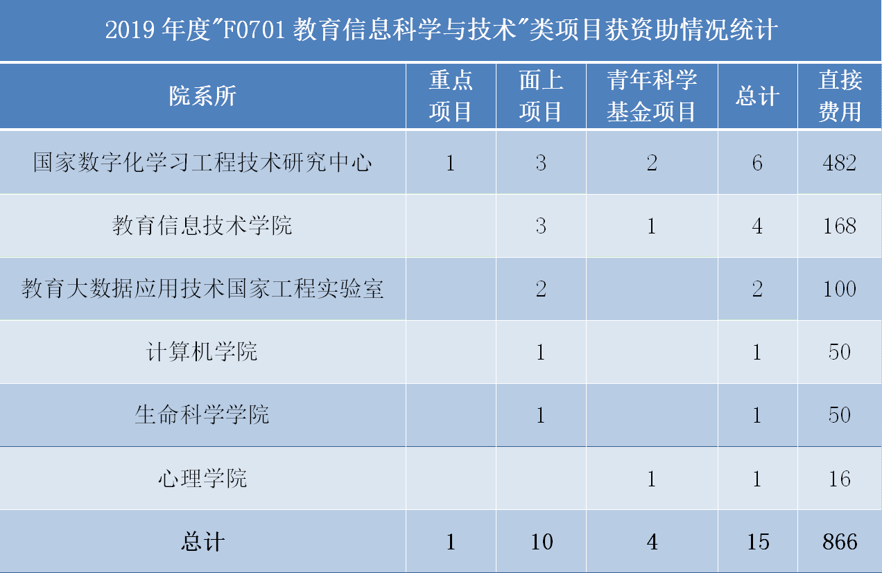 2019年度"F0701教育信息科学与技术"类项目获资助情况统计 |
