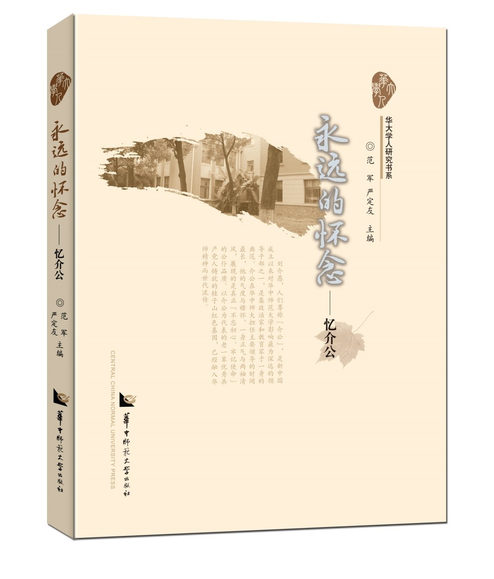 《永远的怀念——忆介公》是为纪念刘介愚诞辰110周年而出版,全书分“永远的怀念”“历史的记忆”“媒体的印痕”“附录”四个板块。“永远的怀念”部分收录刘介愚亲属、师友回忆与其交往的文字,从多方面展现刘介愚亲切诚恳、平易近人的性格,密切联系群众、与群众同甘共苦的工作作风,以及艰苦奋斗、严于律己、不谋私利的高尚品格。“历史的记忆”辑录了《华中师大报》《武汉文史资料文库》《洪山文史》等报刊资料,记载了刘介愚为党和人民的事业忠心耿耿、忘我工作、无私奉献的工作历程。“媒体的印痕”汇辑《华中师大报》《校友通讯》《长江日报》等曾经刊登的文章,充分展示了刘介愚勤俭敬业、两袖清风、清廉正直的道德情操。“附录”部分则收录了刘介愚撰写的有关教育思想、管理艺术的论文十余篇,另有数首(则)诗歌楹联和个人生平事迹的详细介绍。
