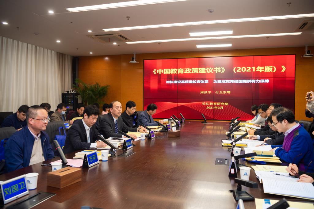 第十三届全国政协委员、湖北第二师范学院院长郑军,第十三届全国政协委员、湖北省人大常委、我校可持续发展研究中心主任龚胜生,第十三届全国人大代表、武汉城市职业学院机电学院实训中心主任禹诚,广西师范大学副校长孙杰远,陕西师范大学教育学院院长陈鹏,华中师范大学教育学院院长雷万鹏等专家就《中国教育政策建议书(2021年版)》进行了深入讨论交流。