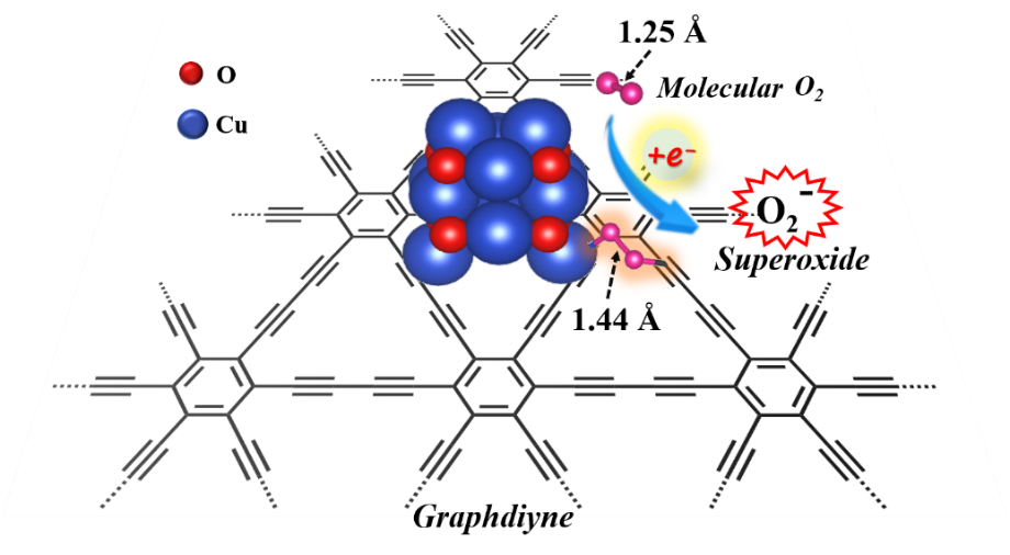 该研究工作揭示了石墨炔基材料sp杂化碳有效提高分子氧活化效率的分子机制,有望应用于自然界广泛存在的众多氧化过程中,也为高效催化材料的设计提供了新思路。