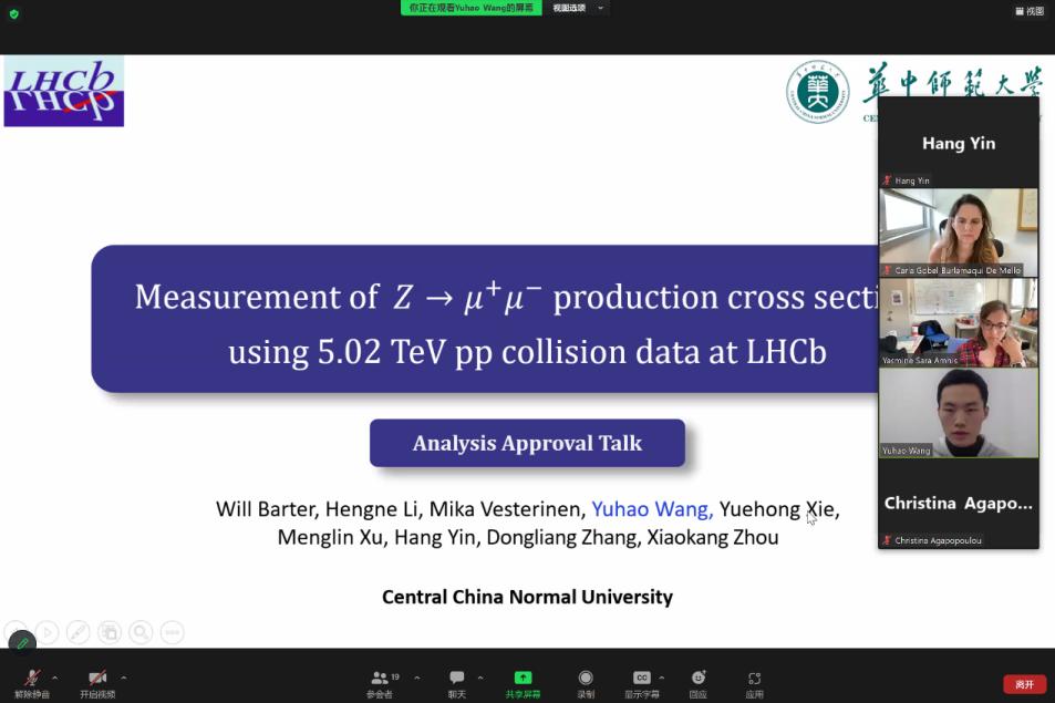 图2王禹昊正在LHCb国际合作组内部做相关的学术报告。图中作者名单按照字母顺序排序