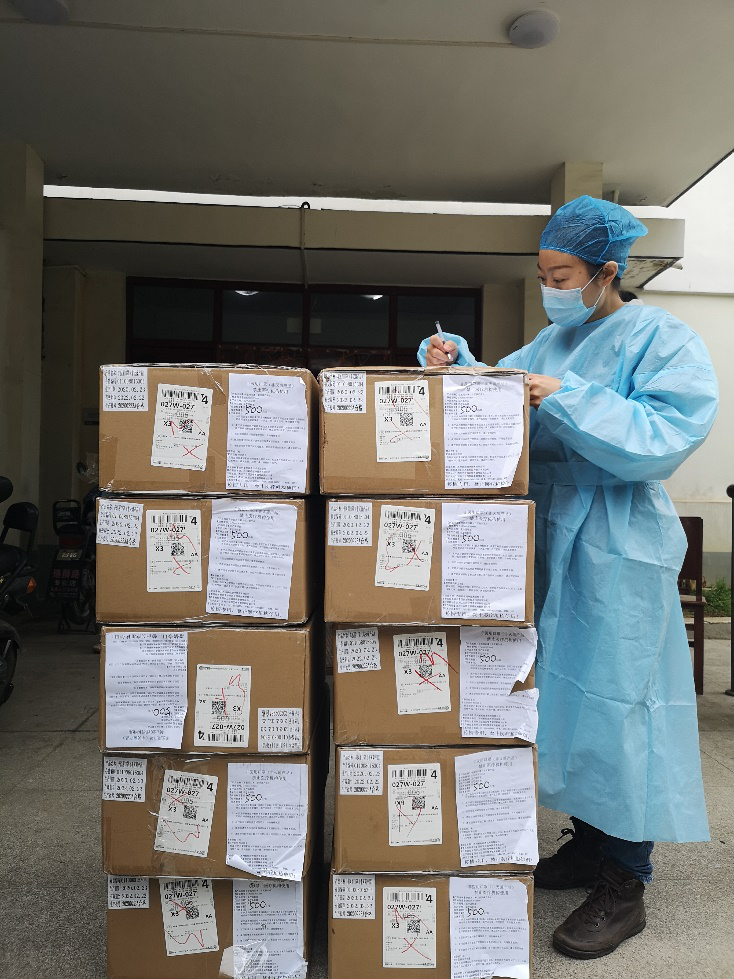 学校招募抗击疫情党员突击队的通知发布后,她没有丝毫犹豫,迅速报名要求参加。在加入党员突击队后,她多次成功“抢单”,数次圆满完成任务。在完成卸货、搬运和上千份蔬菜的分装等工作任务后,虽然常常累得汗水湿透衣背,直不起腰来,她却从不吱声。有一天到学校执行任务,出去的时候体温35度,当她满头大汗地完成任务赶回家的时候,体温却飙升到了37.6度,她只得在小区外休息半晌,体温恢复正常才得回家。在了解到江夏区一位身患糖尿病的老师已断药多日后,她交接好学校南门快递转送点的工作,立刻到校医院取药,为老师送药。加入党员突击队校医院分队后,她协助分发药物、捐赠物资的接收及出入库管理工作,常常主动要求上岗,虽然时常要从早上九点忙到晚上七八点才能下班,每天都感觉很累很乏,但心里却无比充实踏实。