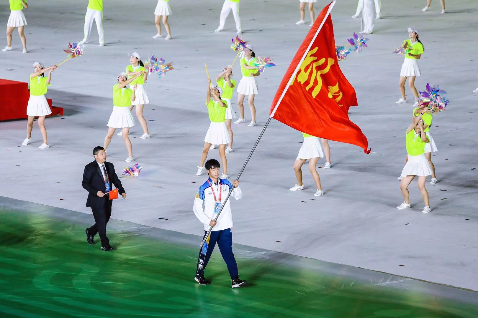 男子马拉松游泳10公里金牌、男子4×200米自由泳接力金牌、男子800米自由泳项目金牌、男子400米自由泳银牌、男子4×200米混合泳接力项目银牌……在前不久结束的第十四届全运会上,我校体育学院2020级本科生张子扬奋勇拼搏,收获满满,特别是他在马拉松游泳男子10公里项目中以1小时50分48秒7夺冠,成为湖北省在全运会马拉松游泳项目的首个冠军。