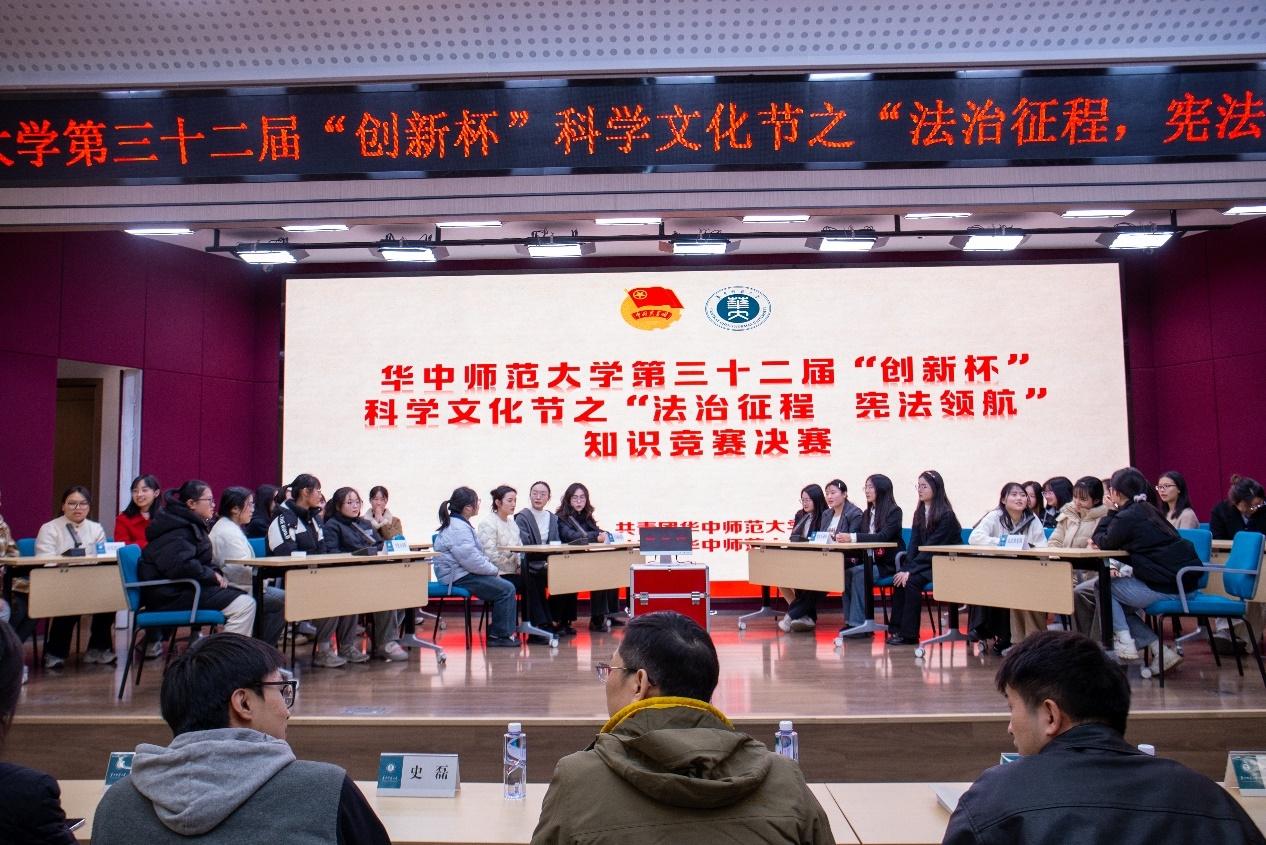 华大在线讯(通讯员 方向晨 雷语恬)为进一步弘扬宪法精神,维护宪法权威,丰富同学们的宪法基本知识,12月8日,我校举办第三十二届“创新杯”科学文化节之“法治征程,宪法领航”知识竞赛决赛。8支参赛队伍、32名选手从初赛环节中脱颖而出,进入决赛角逐。