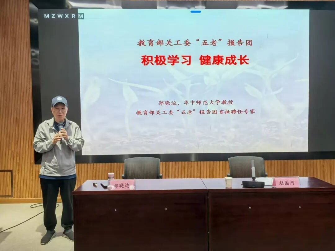 华大在线讯(通讯员 华轩)9月12日,教育部关心下一代工作委员会“五老”报告团河南巡讲报告会在河南省实验小学卓越学院举行。教育部关工委“五老”报告团首批聘任专家、我校退休教师郑晓边应邀为河南省实验中学、河南省第二实验中学、河南省实验幼儿园、河南省实验小学的师生作《积极学习 健康成长》专题报告。