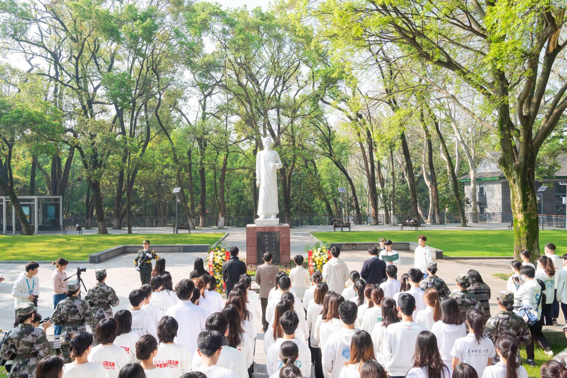 活动伊始,国旗护卫队手举花篮,目光坚定、神情严肃地向恽代英同志的雕像敬献花篮。献礼完毕,全体师生默哀一分钟。“豪情满怀革命路,坚贞不屈永流芳。”研支团成员赵恒键宣读祭文,向革命先烈恽代英寄托哀思。第九期学员班代表段康特、研究生支教团代表杨晨,共同讲述恽代英生平,呼吁青年学子继承先烈精神,高扬理想旗帜,勇担时代责任,为强国建设、民族复兴作出新的更大贡献。