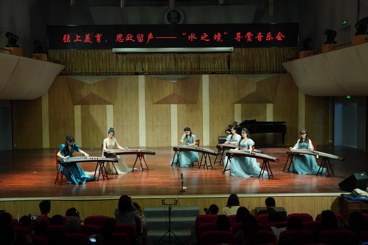 古筝重奏《高山流水》拉开音乐会序幕,流水共通,弦声润心。古筝协奏《雨莲花开》《水墨丹青》用音符绘出一幅清淡悠远的中国画。古筝独奏《林泉》弹奏出林间水的律动,触摸生生不息的水之命脉。古筝重奏《清明上河图》取汴河之景,谱繁华之音,表盛世之情。筝与琵琶交相演奏的《春江花月夜》将婀娜多姿的春江花月之景缓缓铺展开来,营造出江天互接、月潮相望的清幽淡雅之境。《海之波澜》是温柔的海,仿佛一缕柔和的风,托起相思,吹动风帆。节奏明快的《翡翠》则宛如清澈的玉,粼粼波光,映照着细碎的喜乐。