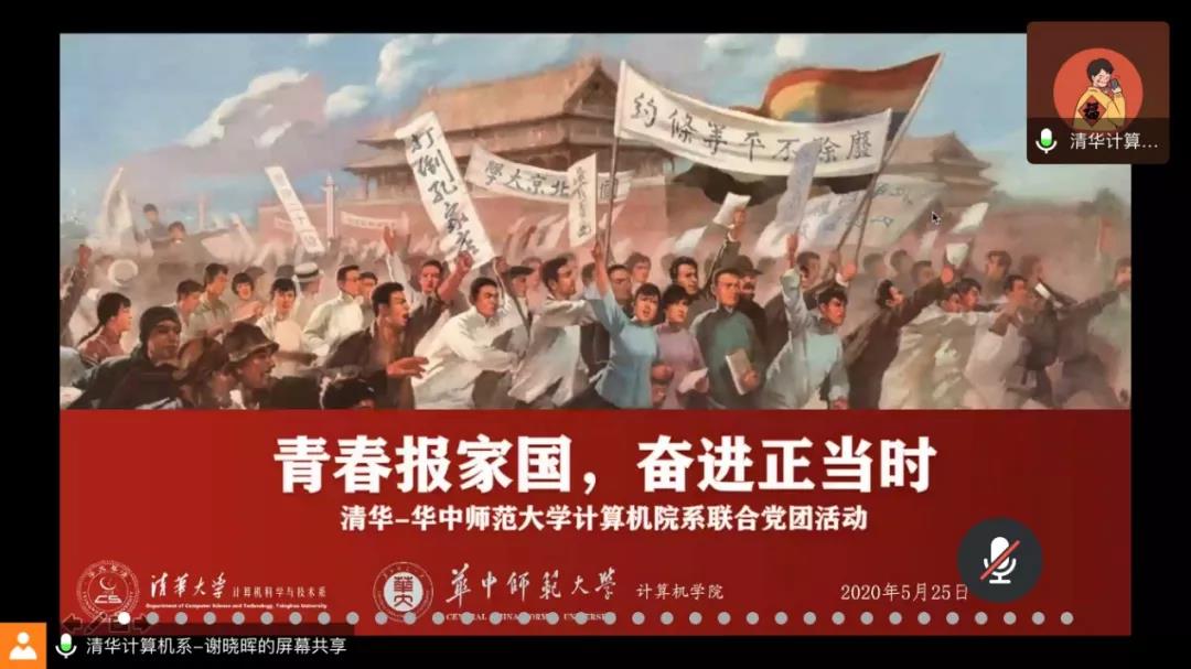 华大在线讯(通讯员 计轩)5月25日,清华大学计算机系与我校计算机学院以“青春报家国,奋进正当时”为主题,召开线上联合党团活动。清华大学计8第一、第二党支部师生党员,我校计算机学院本科生第一、第二党支部,本科生1801团支部等师生,共计110余人参加。清华大学计算机系党委副书记贾珈、刘知远,研工组长易鑫,学生组长谢晓晖以及党建辅导员与各年级辅导员,我校计算机学院党委书记张小新、副书记王坤以及相关辅导员出席。