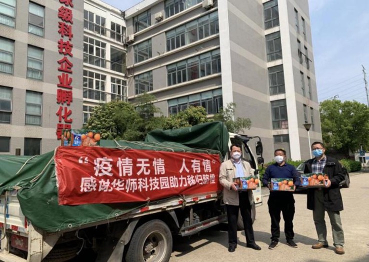 新冠肺炎疫情发生以来,湖北省各地区出现农产品滞销困境,对湖北乡村经济发展造成巨大冲击。为积极响应党和国家精准扶贫的号召,助力脱贫攻坚,华师科技园负责人在了解到宜昌市秭归县3万吨柑橘因疫情影响严重滞销的艰难处境后,立即在园区发起“爱心助农,精准扶贫,共抗疫情”的倡议,通过微信朋友圈、园区企业联络群、校友群等渠道发动身边力量率先为湖北农民带货,呼吁园区企业和社会各界伸出援手以解秭归果农燃眉之急,凝聚社会爱心和正能量,帮助秭归贫困果农渡过难关。