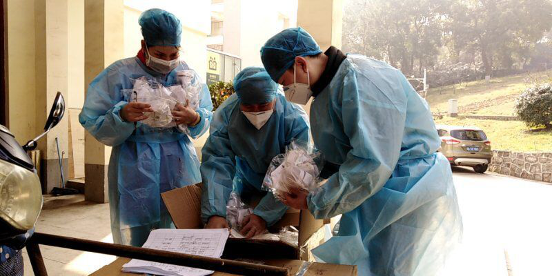 今天是作为学校党员突击队队员回到校医院工作的第三天。上午收物资、发口罩,中午给两位老师送药,忙的不亦乐乎。