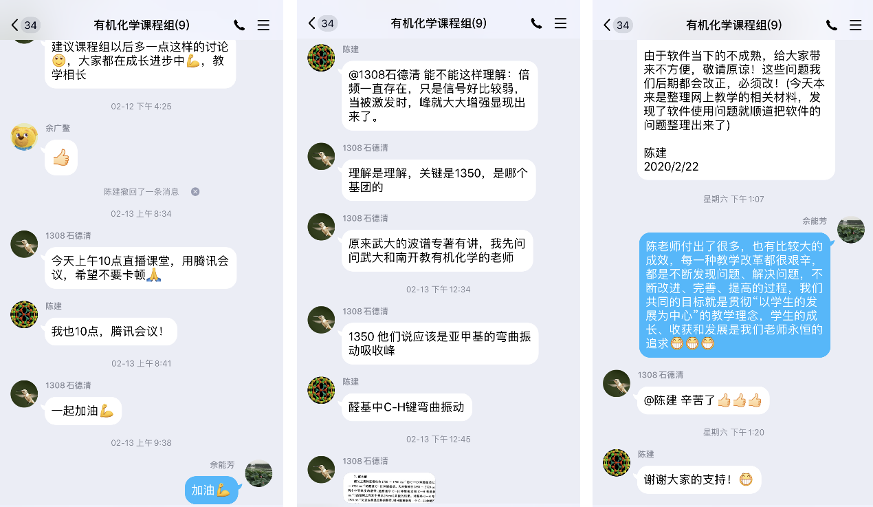 线上授课前,各位老师便积极主动地完成了网络教学的各项准备工作,在云课堂、课程QQ群等线上平台上传分享相应课程材料,陈建老师还自主研发互动微课件《基础有机化学自学教程》供同学们学习。