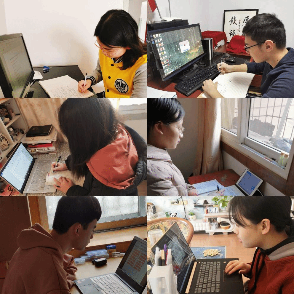 图为同学们通过线上平台上课