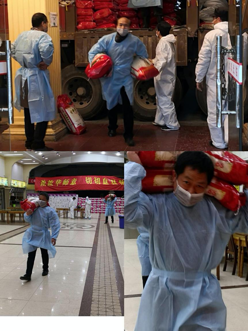 从1月26日成立饮食中心抗疫突击队至今,中心班子下沉一线与队员们一起手提肩扛,共同战斗。一手抓生产,一手抓防疫,从物资接运到加工生产,从食品分装到送餐上门,队员们一天都没有休息,身体纵然疲惫,但丝毫不敢松懈马虎,全力保障疫情防控期间的送餐服务工作。突击队送餐工作队员房威表示,“关键时期,多一个人多一份力,榜样的力量和家人的支持对我来说都是最宝贵的动力。”截至3月3日,累积送餐达4万多份,日均送餐1430多份。一共卸载物资十二批共计200余吨。
