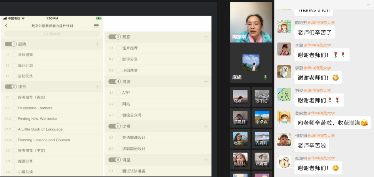 华大在线讯(通讯员 李金督 周淑琪)为进一步彰显学校教育信息化发展优势,落实学校新学期有关会议强调“要全面提升学生信息化素养和能力,提升我校学生就业核心竞争力”的要求,3月20日,外国语学院研工组协同学院外语教师教育研究中心联合开展的“数字外语教师能力提升计划”启动仪式在企业微信平台上举行。研究生院(研工部)、招生与就业处、外国语学院等相关单位负责人以及英语类近200名研究生参加。