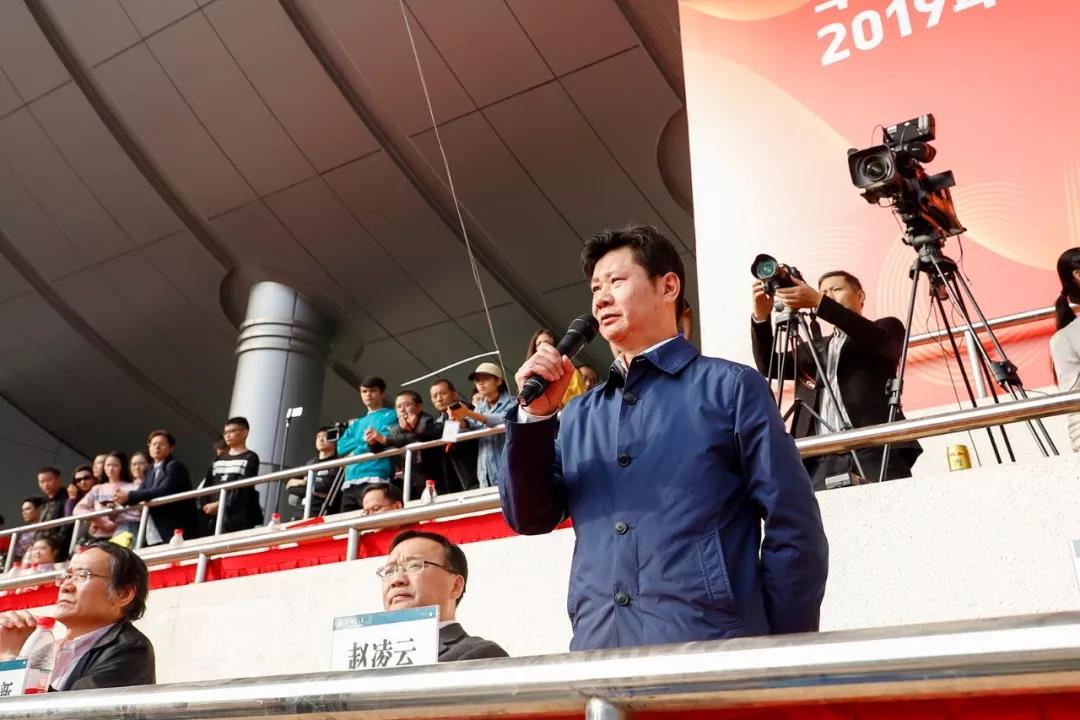 夏立新在开幕式致辞中指出,坚持中国特色社会主义教育发展道路,培养德智体美劳全面发展的建设者和接班人,就要树立健康第一的教育理念,开齐、开足体育课,帮助学生在体育锻炼中享受乐趣、增强体质、健全人格、锤炼意志。近年来,我校构建了“五育并举”的育人体系,大学俱乐部改革持续深化,教学内容体系不断完善,课外俱乐部实质性推进。2019年,在不断完善体育俱乐部课内教学的基础上,逐步实现课外延伸、教学对象全覆盖。此外,我校高水平竞赛成绩亮点不断,例如在刚刚过去的军运会中,体育学院李茵晖获得女子羽毛球双打比赛冠军。他强调,要通过不断深化大学体育教育俱乐部改革、创新群体活动办赛模式、积极推进高水平运动项目发展等举措,确保学生在快乐学习、健康生活的基础上,成长为全面发展的优秀人才。本次运动会是鼓舞斗志、提振精神的盛会,我校要以此次运动会为契机,继续发扬“更快,更高,更强”体育精神,进一步深入开展全民健身运动,激励全体师生努力开创我校体育工作新局面。