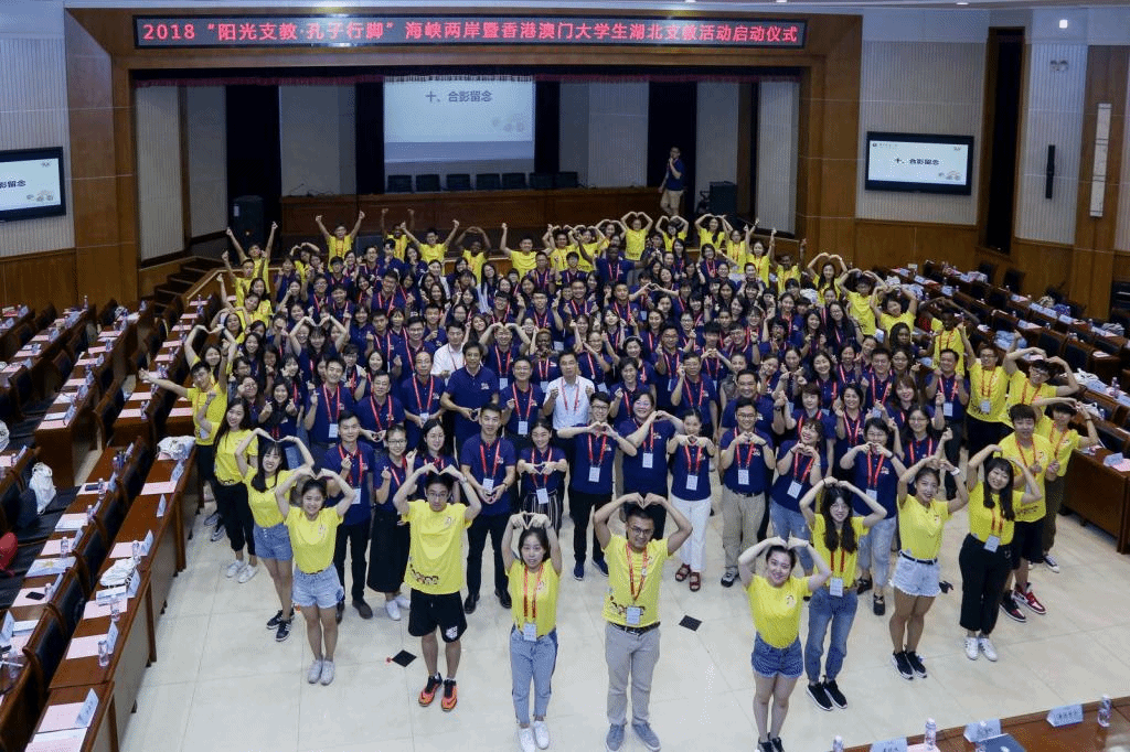 2018“阳光支教·孔子行脚”海峡两岸暨香港、澳门大学生湖北支教活动共有来自台湾师范大学、台湾清华大学、香港教育大学、香港科技大学、澳门大学、北京师范大学、浙江大学、中国政法大学以及华中师范大学等海峡两岸暨香港、澳门地区33所高校的180名师生参加。支教成员将分成16个支教小组,于7月21日至7月28日奔赴湖北省宜昌市远安县、恩施州宣恩县及来凤县的12个支教点开展支教活动。本次活动受到教育部港澳台办、湖北省人民政府台湾事务办公室、共青团湖北省委的高度重视,得到湖北省宜昌市远安县、恩施州宣恩县及来凤县相关部门以及多所高校的大力支持,各项参与规模均创活动举办历史之最。