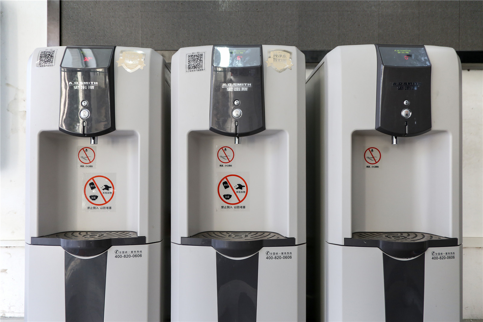 后勤保障部相关负责人告诉记者,更换饮水设备主要是出于对饮水安全和教学楼环境的考虑。桶装水在运输、存放等环节存在安全隐患,相关人员在检测后也发现,尽管检测后发现桶装水水质符合标准,但不及商用饮水机。再者,七、八号楼等主要教学楼,人流量大,对水的需求量也大,高峰期使用量每天可达两百桶。使用后的空桶堆放不齐,既不美观,也不卫生,还容易滚落撞伤人。综合各方面情况后,物业服务中心于今年年初开始筹备更换饮水设备。经过前期考察、商务谈判、合同签订等规范程序后,供应商于8月底将设备安装到位,并于今年9月投入使用。