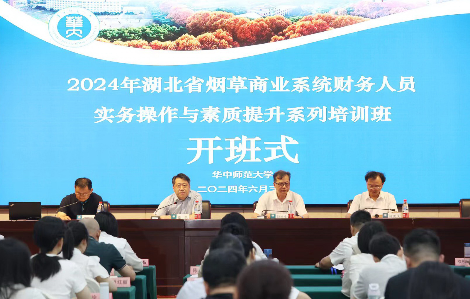 华大在线(通讯员 张晓舒)6月3日,中国烟草总公司湖北省公司财务人员实务操作与素质提升系列培训班开班式在南门教育管理综合楼举行,此次培训旨在提升全省烟草商业系统财务人员专业技能和综合素质。中国烟草总公司湖北省公司党组成员、副总经理涂凯,副校长彭南生出席。