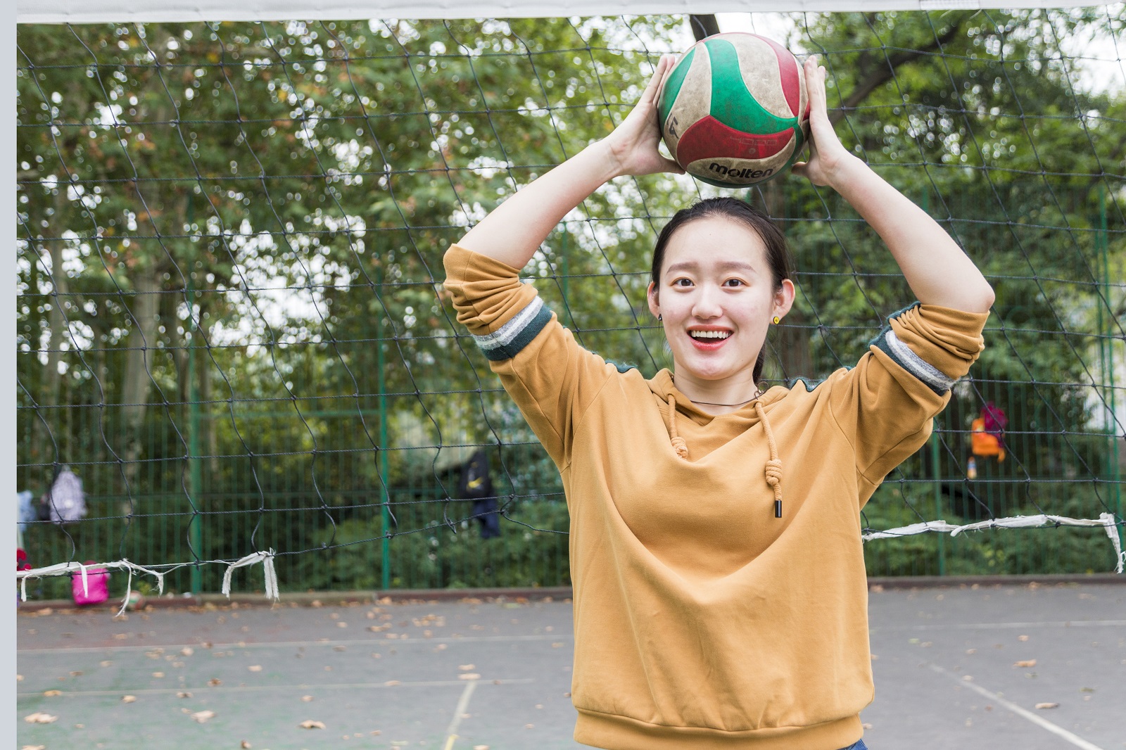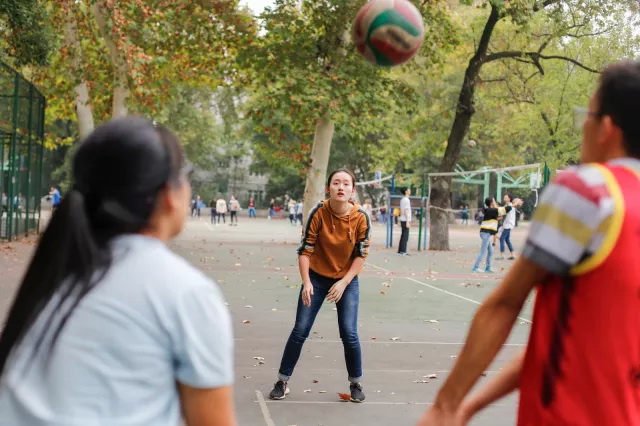因为她的排球起步比大家都晚,所以在队友们休息的时候,她也会自己一个人训练,或者是找自己的好朋友陪她一起打垫训练,争取利用好训练的每一分钟。