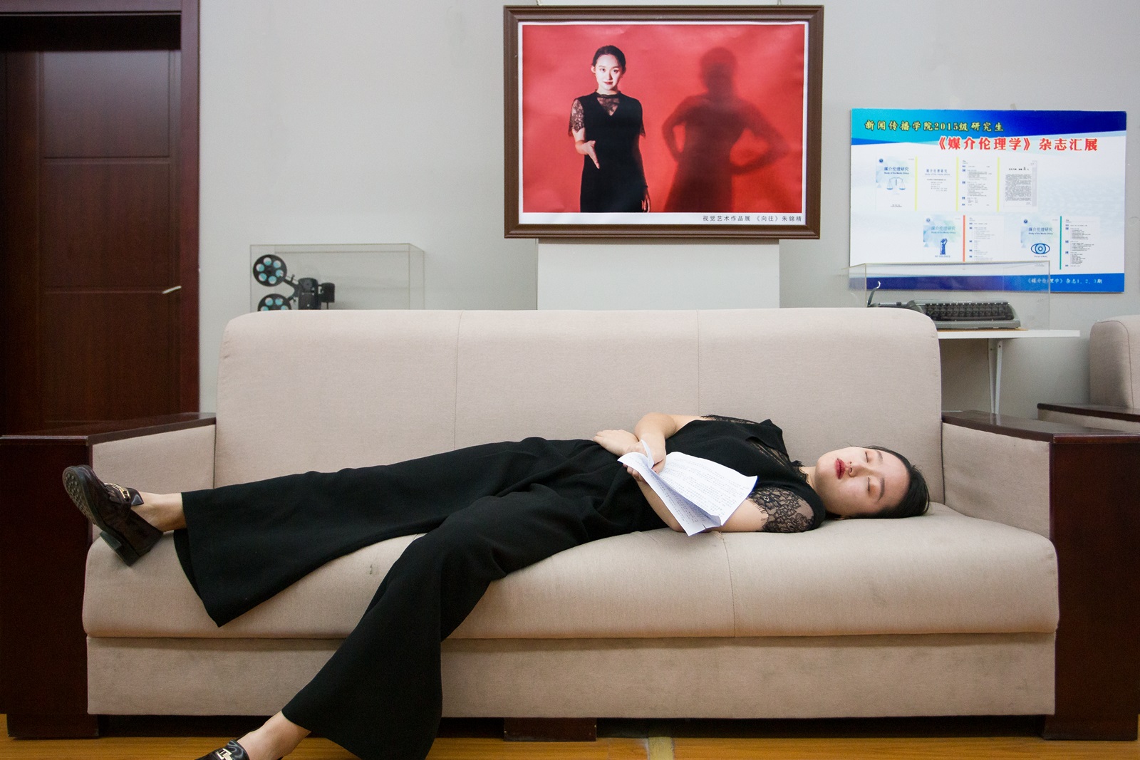 熊馨雅经常会主持一些晚会。活动结束后,她会在沙发上小憩一会儿。每一次上台主持,她都尽全力燃烧自己,展现出自己最好的状态,尽可能地点亮舞台和观众。