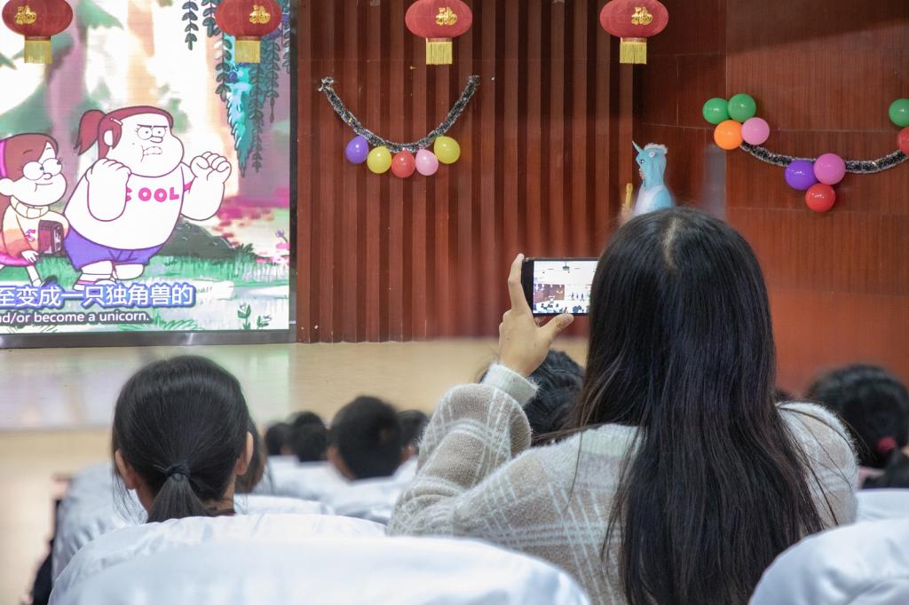 配音比赛中,除了指导学生,她还会负责在比赛活动时的宣传、控场和管理多媒体。在看到自己班上的学生出场时,她会欣喜的拿出手机记录。