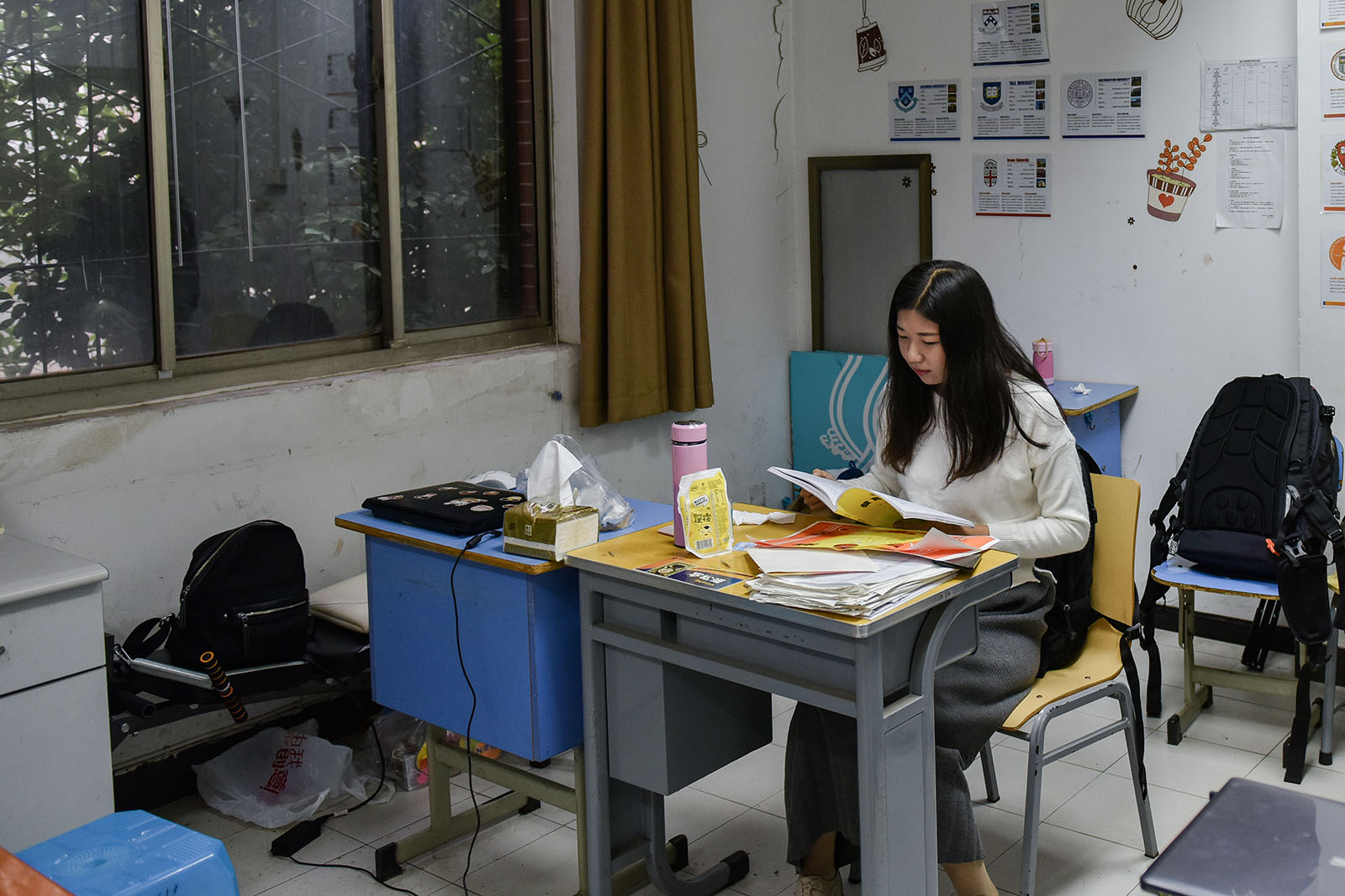 她每天的实习会从七点半的早读开始,这时学生会学习单词,背诵课文,她会去教室监督她们并解决学生的疑惑。