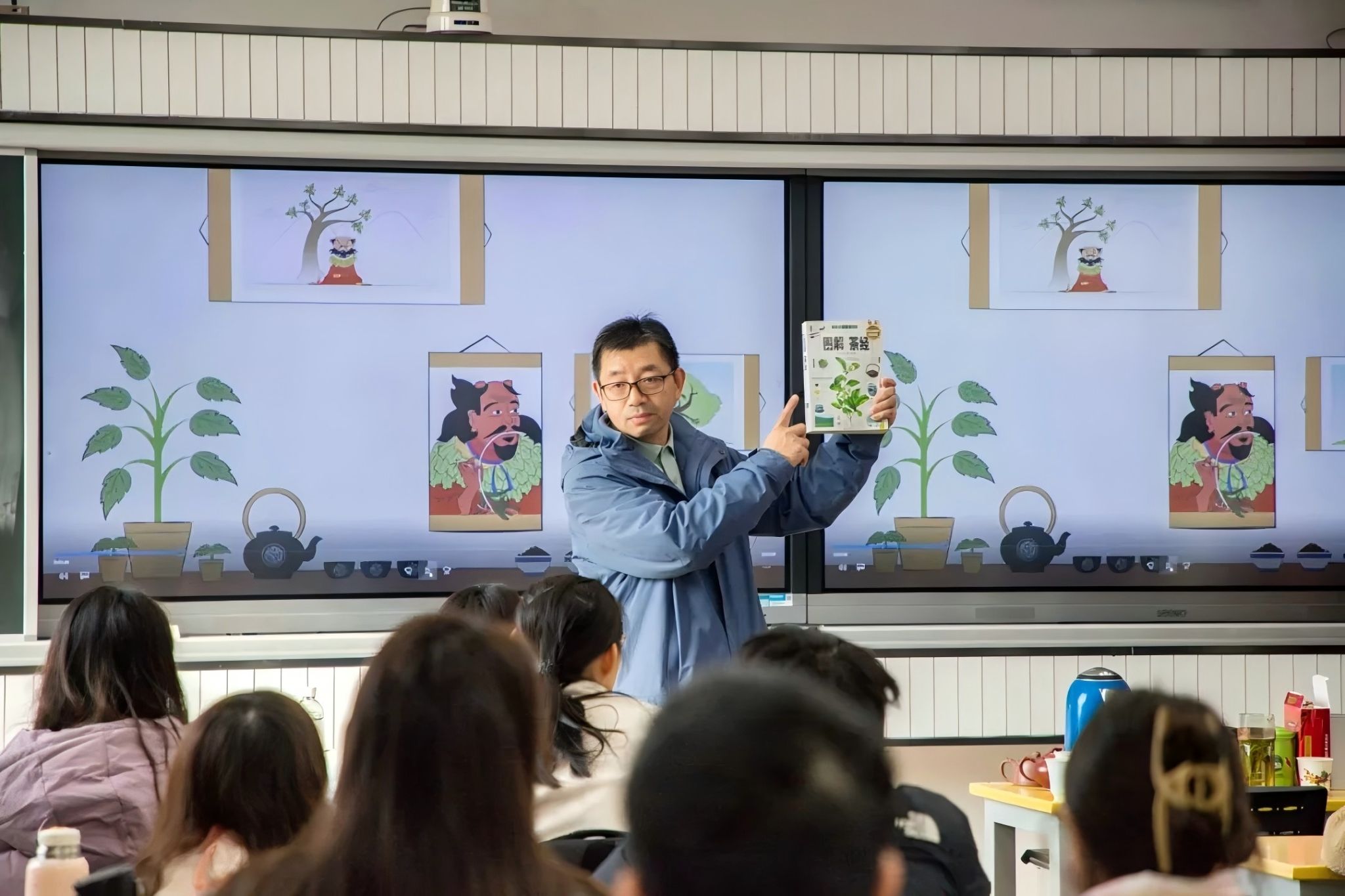热水注入,金骏眉、茉莉花茶、西湖龙井、铁观音、太平猴魁纷纷在茶壶、茶杯中“舒展”开来,清雅的茶香在教室中弥散。“来,同学们可以尝一尝。”课堂上,师生边品茶边聊茶,经常被选修了这门英语课的同学们视为“别样的风景”。